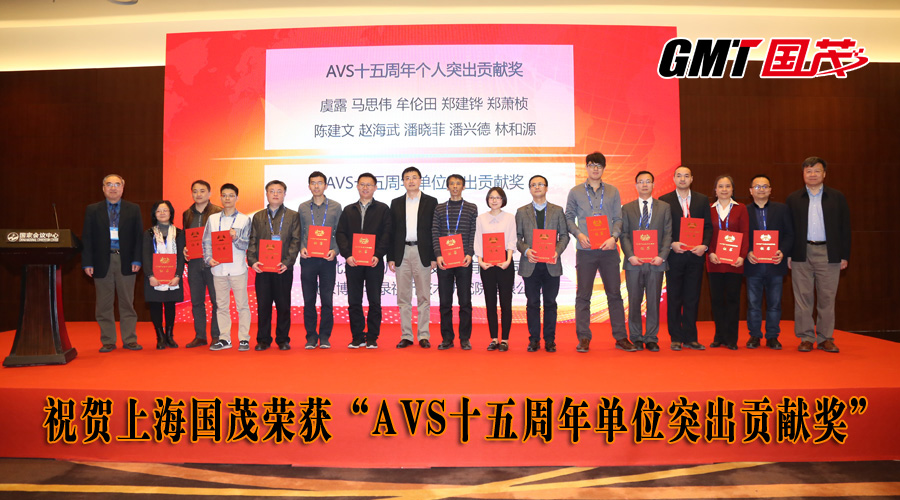 2017年3月18日,在北京.國家會議中心舉辦的“國際音視頻產業論壇暨AVS 標準十五周年年會”上,上海國茂榮獲了“AVS十五周年單位突出貢獻獎”,趙海武博士榮獲“AVS十五周年個人突出貢獻獎”。同時獲此殊榮的還有清華大學和華為海思等單位。上海國茂數字技術有限公司受邀在慶典活動中介紹國茂AVS2標準研發的貢獻和成果。這是上海國茂的一個重要里程碑,也是一個國茂引以為豪的成就。