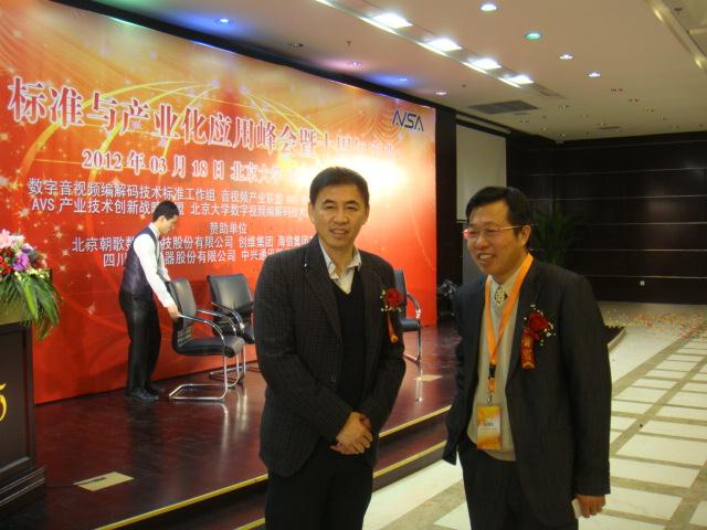北京大學校長周其鳳、 中央電視臺總工程師丁文華和王理事長親切交談