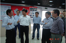 2012年4月27日下午,廣州市科技和信息化局謝學寧局長、廣州市番禺區人民政府樓旭逵區長一行蒞臨上海國茂考察調研。謝局長、樓區長一行參觀了上海國茂展覽廳,認真聽取了王總對于公司發展