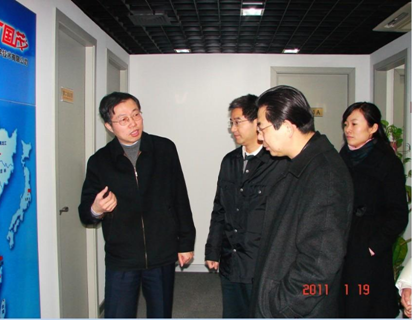 2011年1月19日上午,上海市張江高科技園區管理委會副主任侯勁帶領經濟發展處、計劃財經處一行蒞臨上海國茂數字技術有限公司進行考察調研。侯主任一行參觀了上海國茂展覽廳并聽取了王總對